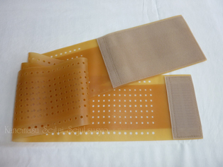 このバンドは、幅が内側8cm・外側12cmの二重構造になっている為、骨盤全体を包み込むようにサポートします。そして、内外二枚のゴムバンド全体に4mmの穴が無数に開いており、長時間装着してもむれにくいマジックテープ付きの腰用ゴムバンドです。
